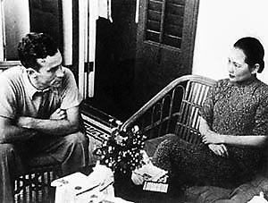 | 埃德加·斯诺在《复始之旅》中写道,宋庆龄在与他对话时曾说过她的“祖先是海南岛的客家人。”图为1939年宋庆龄与斯诺在香港。