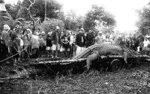 9月4日,在菲律宾南阿古桑省,当地居民看着重达600公斤,身长6.4米的咸水鳄。这是迄今为止菲律宾捕获的最大鳄鱼。 新华社/路透