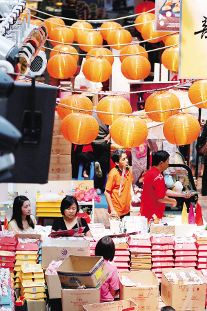 | 马来西亚华人华侨购买月饼和灯笼,为即将到来的传统节日中秋节做准备。图为9月10日,在马来西亚吉隆坡,顾客在选购月饼。 新华社发 |