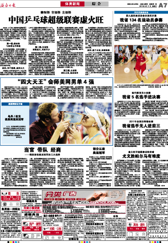 海南日报 体育新闻 007 2011-09-111 2011年09月11日 星期日