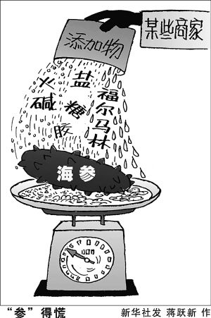 今年3月,卫生部针对海参市场的非正常经营情况曾明确表示:生产经营干海参,应当执行我国有关《干海参》的标准,不允许使用除食盐以外的其他食品添加剂。此后不久,各地工商部门也曾对市场中的加糖海参进行了查处。