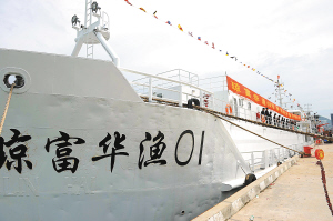| 9月9日,准备开赴南沙美济礁的“琼富华01”号渔船。 本报记者 苏建强 摄 |