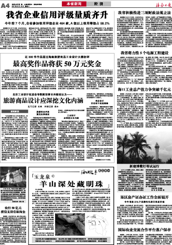海南日报 本省新闻经济 004 2011-09-131 2011年09月13日 星期二