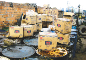 | 浙江宁海县一作坊打包好的地沟油。 |