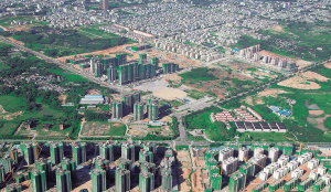 今年1至7月底,儋州市划出164亩土地,投入6亿元人民币,计划兴建3020套保障住房。目前,该市怡心花园内有13栋520套住房已全部封顶。图为日前航拍的保障房建设场面。 吴文生 摄