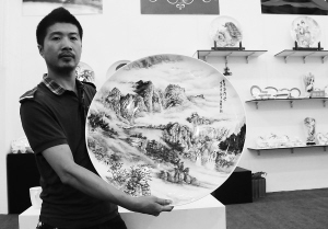 9月16日,全国最大骨瓷座盘在第14届中国唐山陶瓷博览会上亮相。该座盘直径达到了25寸,刷新了此前全国骨瓷座盘20寸的记录。 新华社记者 岳文婷 摄