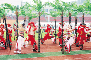 本报贵阳9月16日电 (特派记者徐珊珊 通讯员徐世书)今天,贵州体育馆上出现了2棵笔直高耸的槟榔树。在“高高的树上结槟榔,谁先爬上谁先尝”……这首海南人民耳熟能详的歌曲伴奏下,2名身着民族服装的小伙子轻巧地徒手爬上了数十米高的槟榔树。 今天上午发生在贵州体育馆的场景,是我省参加第九届民族运动会表演节目《槟榔树上的小伙子》中的一幕。看到我省代表队成员轻松自如的爬树场景,许多在场观众不时发出赞叹和叫好声。 本届运动会上,海南代表团参加11个竞技项目和3个综合技巧类表演项目的比赛。为了备战运动会表演项目,我省从海口市艺术团和白沙歌舞团等地选出20名演员,集中进行了1个多月的训练。运动会上,代表团成员们一共献上了极具海南椰岛风情的舞蹈———《椰壳声声》、《斗笠下的笑容》和《槟榔树上的小伙子》3个表演节目。 “今天的表演节目以槟榔树为节目场景,展现了身着民族服装的我省少数民族青年男女在槟榔树下嬉戏的场景。将这些少数民族生活元素和场景融入到少数民族体育赛事之中,体现了海南自然生态的民族特色和地方特色。” 海口市艺术团团长、我省代表团表演项目负责人蒙麓光表示。 |