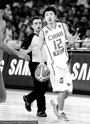 | 中国男篮新控卫于澍龙(右)在组织进攻。 小新发