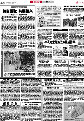 海南日报 中国新闻 综 合 004 2011-09-181 2011年09月18日 星期日