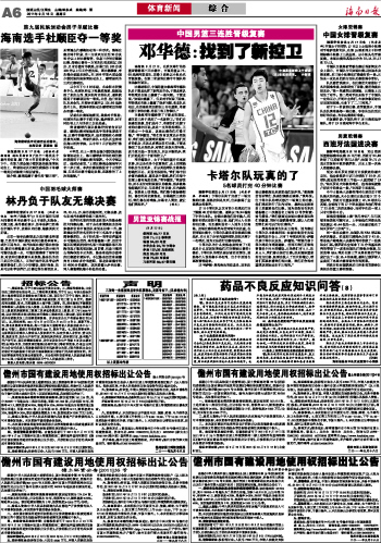 海南日报 体育新闻 综 合 006 2011-09-181 2011年09月18日 星期日