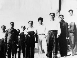 | 1983年8月,王越丰(前排左三)、林毓豪(前排左四)、张日和(左五)、孙家浩(右二)、黄文忠(右三)等在三亚鹿回头山顶,为创作《鹿回头》雕塑和兴建鹿回头公园选址。 |
