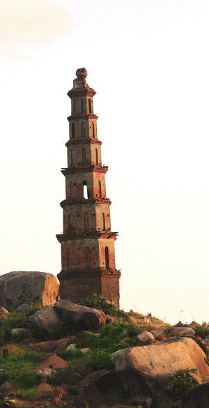 沿着一条荒芜的小路,我们去探访青云塔。塔体为八角形,用火砖和零星石料砌成,塔高约30米,分七层七檐。顶层正中,突出一个八棱柱,柱顶托着一个球形塔刹。经历了风风雨雨,青云塔的塔身如今已稍有倾斜。塔周围怪石嶙峋,百态千姿。