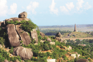 | 从东山岭上观望万宁青云塔。 海南日报记者 张杰 摄 |