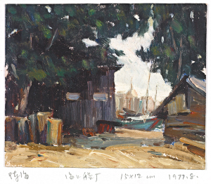 年轻时曾很崇拜那个时代的英雄人物,记得那些英雄好写日记,把自己想的、做过的事记录下来,一旦不幸牺牲后,这些日记里的某些豪言壮语便成了我们年青人学习的榜样。但自觉得文笔并不好,想来也只有画画可以把自己所见所想记录下来,于是这便成了我的生活习惯,在工厂的三年多时间里,平时总是利用周末或下班后的空闲时间与一班志同道合的画友王家儒、蔡平、戴幕平等骑着单车出没于海口长堤、钟楼、海关大楼、海甸岛及海口周边地区,当时我们这班“文艺青年”不时会向海南艺术馆的张应中老师讨教(张当时的小风景画可以说画得出神入化,是我们无限崇敬的老师)。张应中对我们这班“穷小子”并不嫌弃,总是大方赐教,还把他自己的精品供我们学习研究,可说与我们是忘年之交,良师益友。我当时能取得一些进步全因拜他所致,在我考上广州美院之后曾到长沙去拜访他(他其时已调长沙艺术馆),他还把自己精品写生二幅赠我保存 ,我一直对张应中老师心存感恩。另外,让我在那个时期在绘画上有机会得到锻炼与提高的还有当时市文化馆的吴礼泉、潘正沂老师,他们时常把我从工厂抽调到市文化馆进行文艺创作,在当时这种机会对每一个文艺爱好青年来说都是无比珍贵。还记得打倒“四人帮”后市里要画一幅“你办事我放心”的巨型宣传油画时,把我与现在海南大学任教的王家儒都抽调到市文化馆进行创作,于是便有了当时海口市最为大型的一幅引众人注目的户外油画。