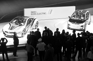 德国宝马集团在车展上发布了其全新i系列概念车———纯电动车i3和插电式混合动力车i8。i3配有一台最大功率125千瓦的电动机,达到百公里时速的时间不到8秒,可连续行驶150公里,预计于2013年正式量产。i8除了与i3配有相同的电机系统外,还包括一台1.5升涡轮增压三缸汽油引擎,最高时速为250公里,其百公里油耗低于3升,适合追求速度感和操控舒适性的驾车者。这两款车还使用了兼具强度和轻质的碳纤维增强复合材料,既降低能耗也提高了安全性能。