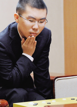 20日,在郑州举办的中国围棋快棋公开赛决赛中,朴文垚九段执白中盘战胜陈耀烨,夺得冠军,并获得20万元冠军奖金。图为朴文垚在决赛中思考。