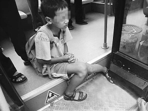男孩被公交车门卡住左脚。 刘剑明 摄