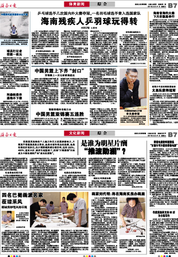 海南日报 体育新闻/文化新闻 015 2011-09-211 2011年09月21日 星期三