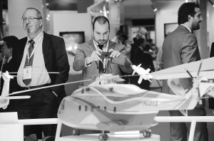9月21日,经过长达1年的准备工作,2011年北京航展在国家会议中心开幕。中国航空工业集团公司、波音公司、欧洲宇航、空中客车等近200家国内外知名航空制造业参展参会。图为观众在中航工业展台参观。 新华社记者 王建华 摄