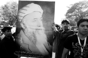 | 在喀布尔,人们抬着拉巴尼的画像悼念拉巴尼。 新华社/法新 |