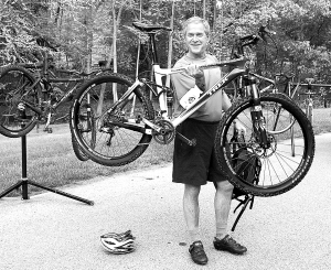 ③在美国马里兰州贝尔茨维尔,小布什准备骑车健身。