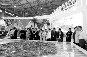 | 9月21日,代表们在参观富有热带气息的海南展馆。 本版照片均由本报特派记者 宋国强 摄 |