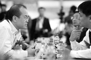 | 9月21日,在海南签约区内,签约者在交流。 |