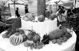 | 9月21日,在海南展馆内,各式各样的热带水果吸引了众多代表。 |