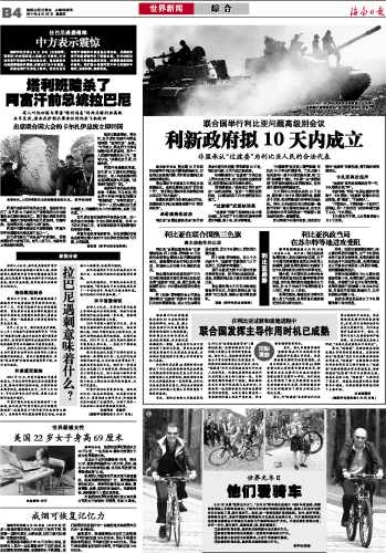 海南日报 世界新闻 012 2011-09-221 2011年09月22日 星期四