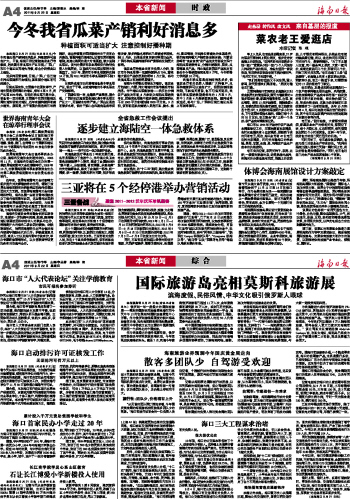 海南日报 本省新闻 004 2011-09-221 2011年09月22日 星期四