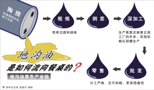 据记者私下了解,由于正规餐橱垃圾回收企业只是免费负责垃圾收运,一些“油水”大的餐馆或者学校、机关食堂被一些“黑作坊”盯住后,后厨、某些负责人经常可以收到塞进手的几十上百元的“小费”,因此他们的“油水”垃圾基本上不给回收企业而只专供“黑作坊”。
