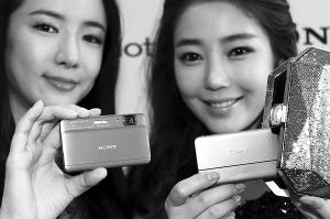 9月21日,在韩国首尔,模特在发布会上展示索尼超薄相机DSC-TX55。 当日,索尼公司在首尔推出了即将于10月初在韩正式销售的索尼超薄相机DSC-TX55。该款相机厚度仅为12.2mm,堪称数码相机中最薄相机。 新华社记者 何璐璐 摄