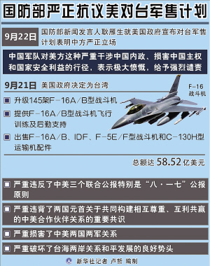 据新华社北京9月21日电 外交部发言人马朝旭21日就美国政府宣布对台军售计划阐明中方严正立场。