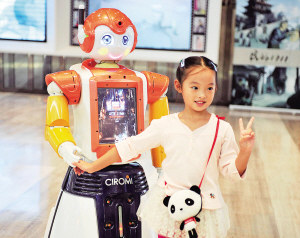 机器人服务员“西如美”近日在武汉银兴乐天影城向观众推荐新片。来自韩国首尔的“西如美”可以为观众指引方向、推介影片,它腹部的显示屏可以播放预告片和影城介绍。据介绍,“西如美”已经在韩国电影院工作2年,它第一次造访中国将为观众提供为期一个月的服务。 新华社发