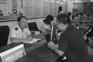 办税服务厅普遍建立了“局长值班”制度。图为三亚市国税局局长郑强在接待纳税人咨询。(刘曦 摄)