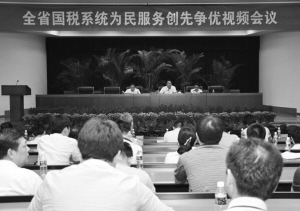 | 9月23日,省国税局召开全省国税系统“为民服务创先争优”视频会议,对深入开展“为民服务创先争优”活动进行全面部署。(陈荣琨 摄) |