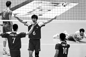 中国男排28日晚在伊朗进行的亚洲男排锦标赛半决赛中以3:2险胜澳大利亚队,时隔六年之后再次闯入亚锦赛决赛。中国队也拿到了将于11月进行的男排世界杯和明年的奥运落选赛的参赛资格。图为中国队员庆祝胜利。 新华社发