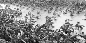 | ↑海口市琼山区红旗镇的一个香蕉基地被水淹了。 通讯员 龙泉 摄 |