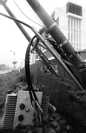 | 澄迈老城的海南生态软件园,一个变压器被台风刮倒。 本报记者 李英挺 摄 |