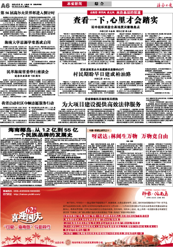 海南日报 本省新闻 006 2011-09-301 2011年09月30日 星期五