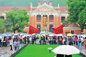 10月1日,武汉首义广场上迎来了大量游客。游客们参观武昌红楼———辛亥革命武昌起义纪念馆、与孙中山先生铜像合影,重温辛亥革命历史。 新华社发