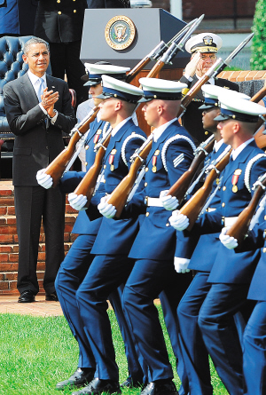 | 9月30日,奥巴马(左)出席美军参谋长联席会议主席迈克尔·马伦(右)的离职仪式时证实,“基地”组织阿拉伯半岛分支重要头目安瓦尔·奥拉基已被击毙。 新华社发 |