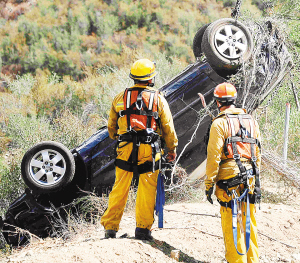 9月30日,在美国洛杉矶天使之冠高速公路附近的一个森林峡谷,救援人员找到大卫·拉沃的汽车。 现年68岁的美国老翁大卫·拉沃家住加利福尼亚州洛杉矶,9月23日驾车前往奥克斯纳德市,后与家人失去联系。家人向洛杉矶县警方报案,警方根据拉沃最后的手机信号,确定事发大体区域。拉沃的3个子女随后沿途寻找,29日在洛杉矶国家森林公园一处峡谷内找到他。大卫·拉沃在路上遭遇车祸坠落山崖6天,靠饮溪水、食昆虫和树叶维持生命。 新华社/路透
