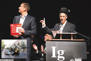 每年诺奖开奖前,更引起人们关注的是搞笑诺贝尔奖,由科学幽默杂志《不可思议研究年报》一年一度颁奖,主要奖励那些“不同寻常”的科研成果。颁奖地点是哈佛大学桑德斯剧院,奖项评委里面也有很多是真正的诺贝尔奖获得者。