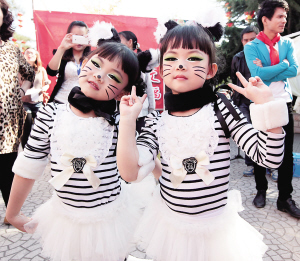 这是10月2日在北京双胞胎文化节上拍摄的一对双胞胎姐妹。当日,为期2天的第八届北京双胞胎文化节在红领巾公园举行。近600对双胞胎参加才艺比拼、体育比赛、盛装巡游、亲子互动游戏等活动。 新华社发