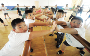 | 资料照片:参加在杭州举办的“小胖墩”减肥训练营的小胖墩们在上武术课(7月21日摄)。