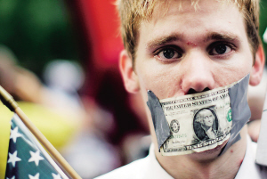 | 抗议者用一美元纸钞将嘴巴封住。 新华社/路透