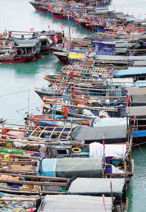 据悉,截至2日19时40分,全省27172艘渔船全部回港避风。 本报记者 李英挺 摄 |