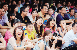 10月3日,保亭黎族苗族自治县槟榔谷旅游区的“抢亲”表演让游客乐开了怀。 本报记者 王凯 摄