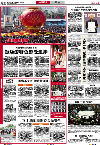 海南日报 中国新闻 综 合 002 2011-10-041 2011年10月04日 星期二